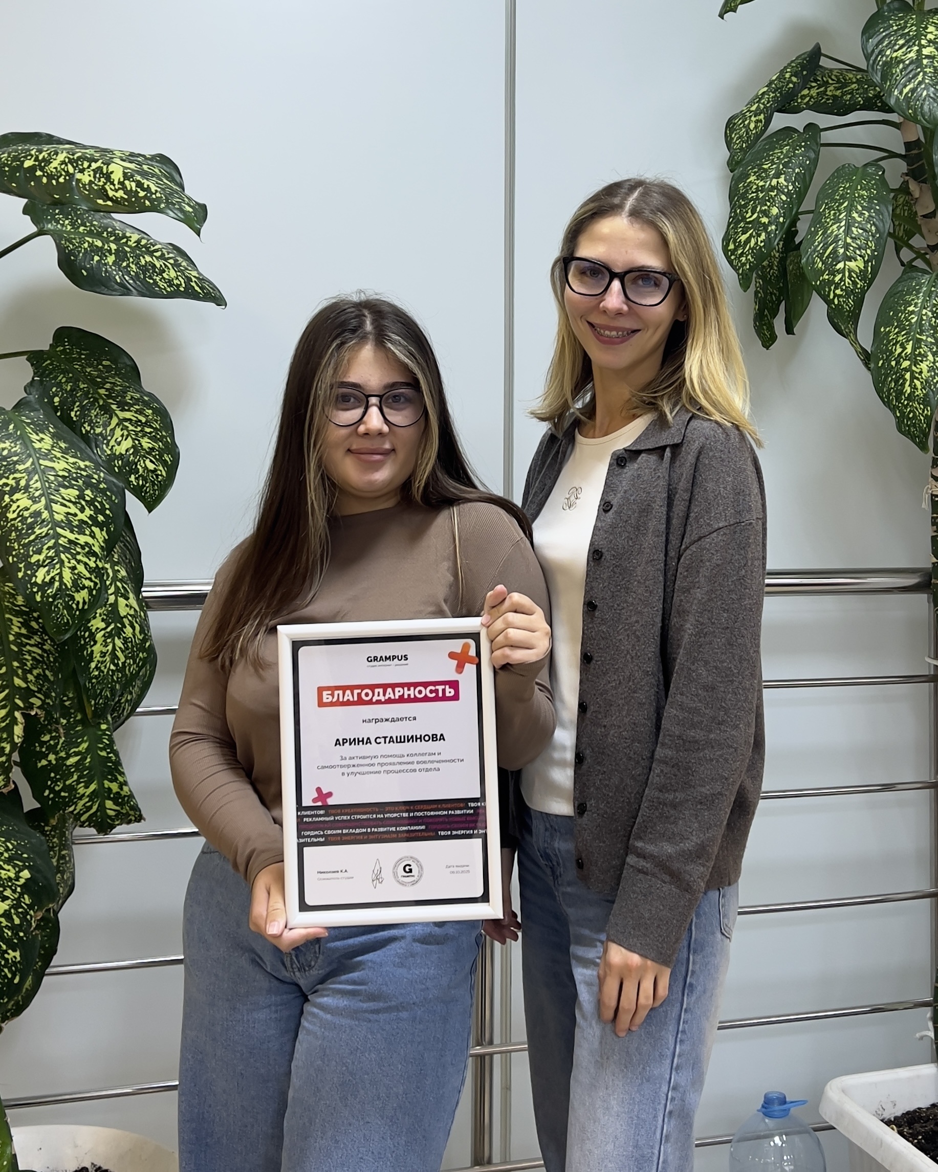 Вручили благодарность за профессионализм, активную помощь отделу и вклад в общее развитие.
