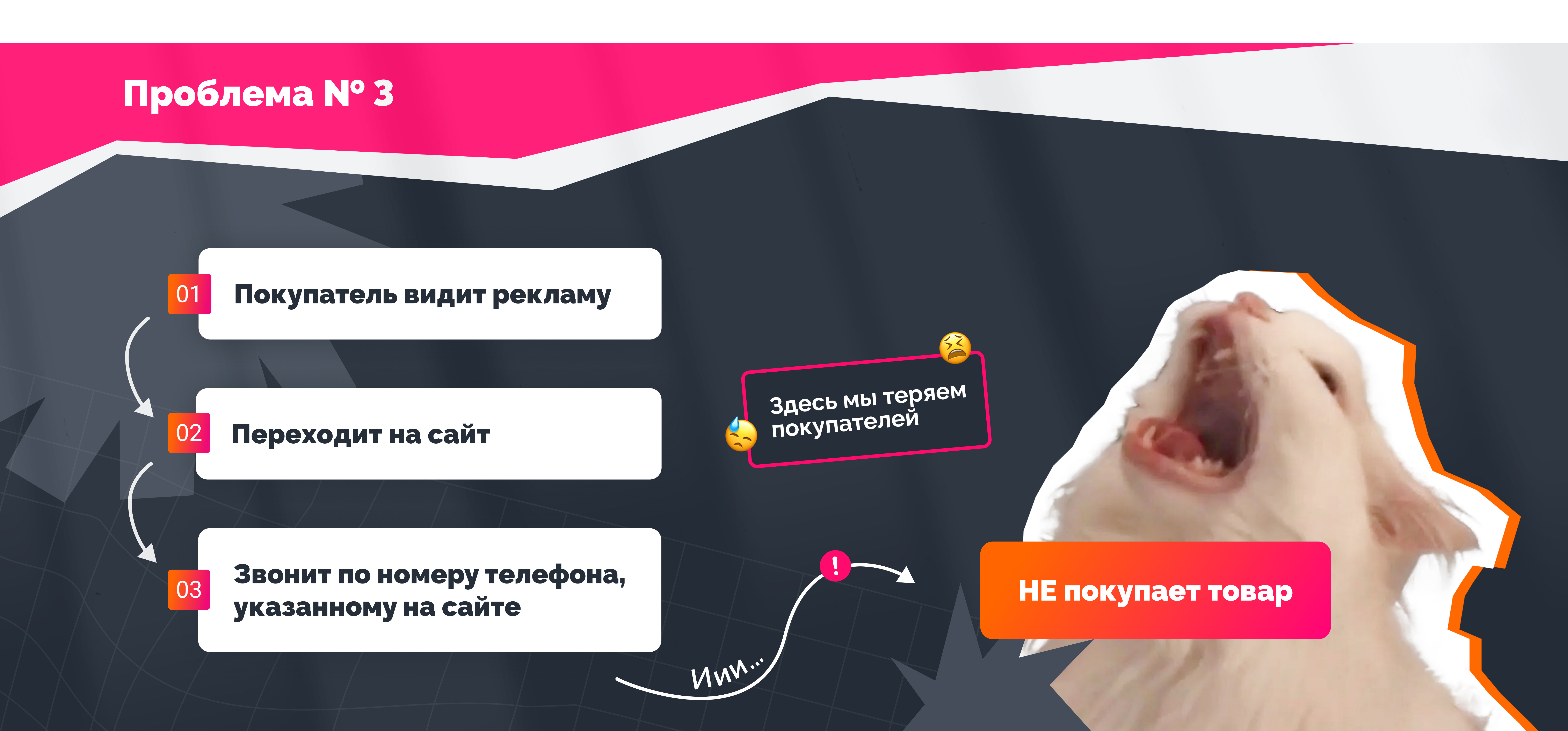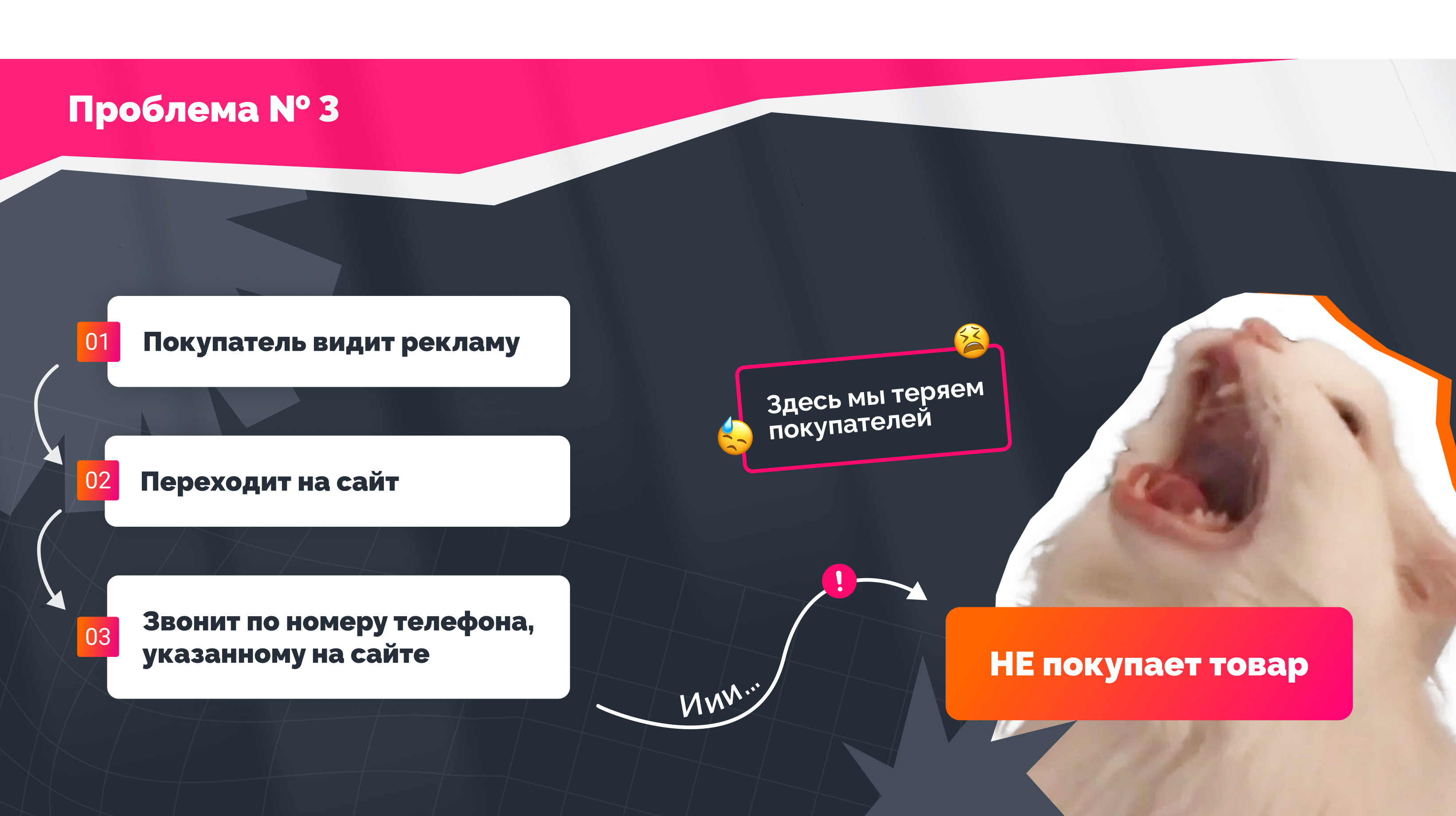 Проанализировав путь клиента от просмотра каждого рекламного объявления до продажи, обнаружили 3 проблему.