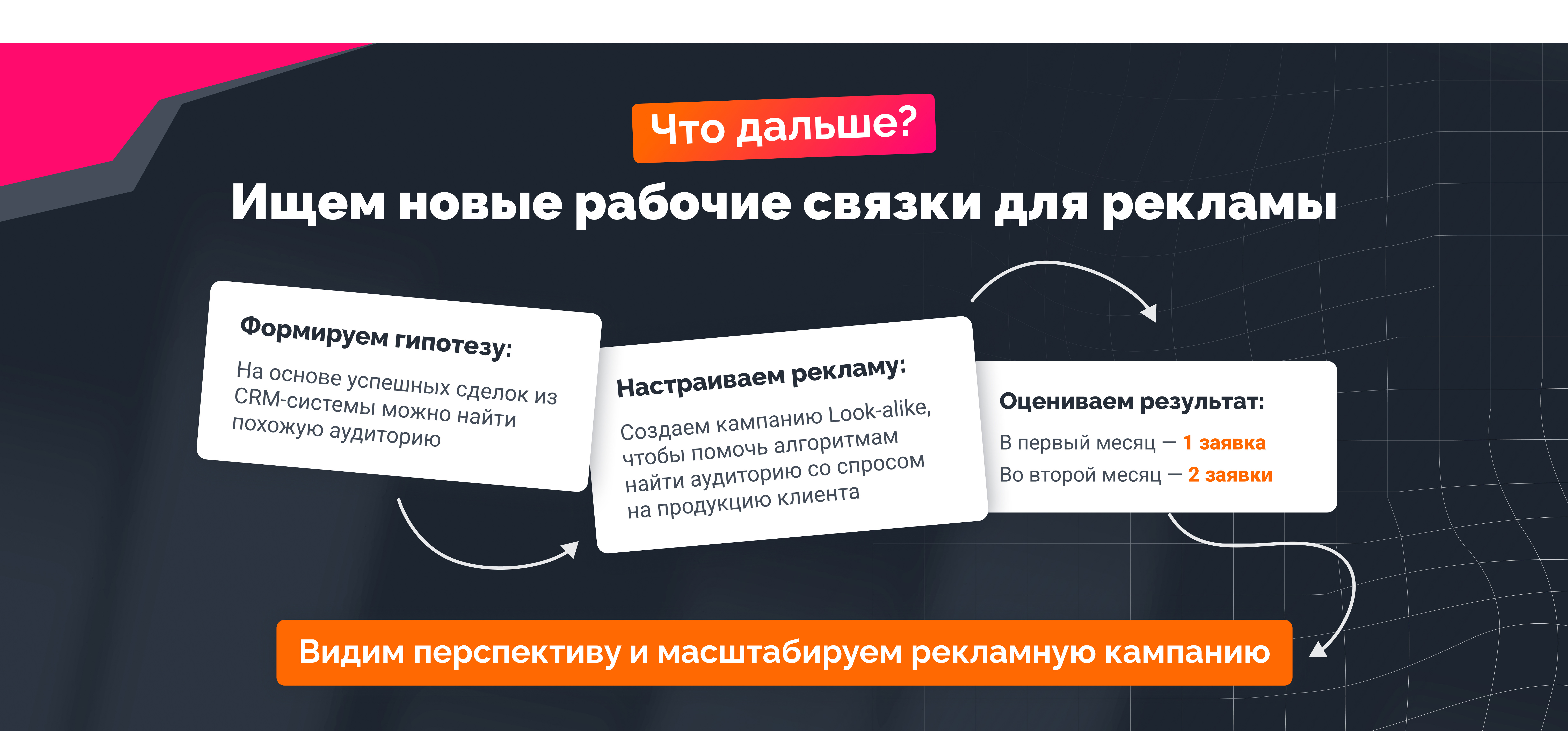 Мы предлагаем настроить дополнительные рекламные кампании с оплатой за успешные лиды, которые перешли в прибыль.